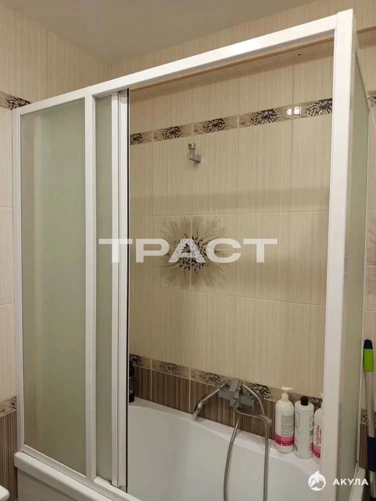 Санузел совмещенный. Глубокая остекленная лоджия добавляет полезное пространство, где можно организовать зону отдыха или хранения.