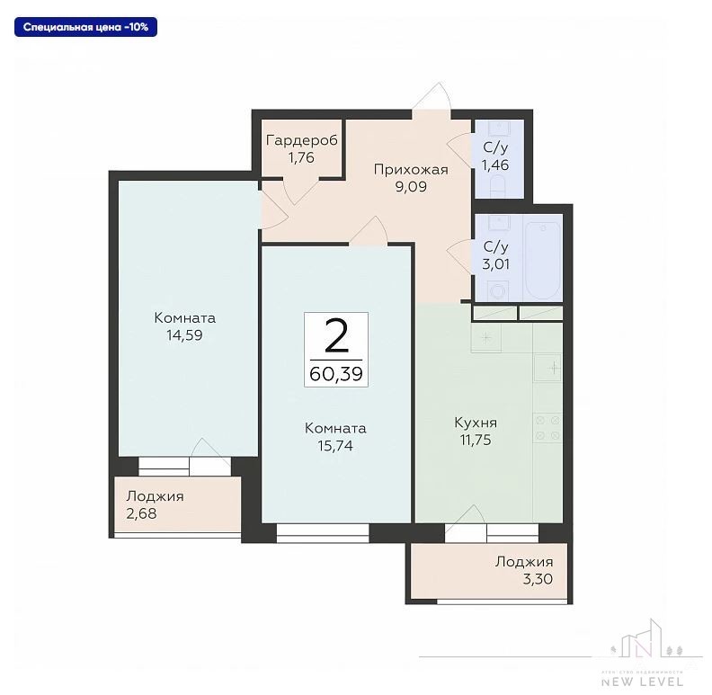 Квартира 60.39 кв.м с АКЦИЕЙ - СПЕЦИАЛЬНАЯ ЦЕНА - 10%, расположена на 5 этаже в 8 секции в новом жилом квартале «Авиапарк» от надёжного девелопера ГК «Развитие».