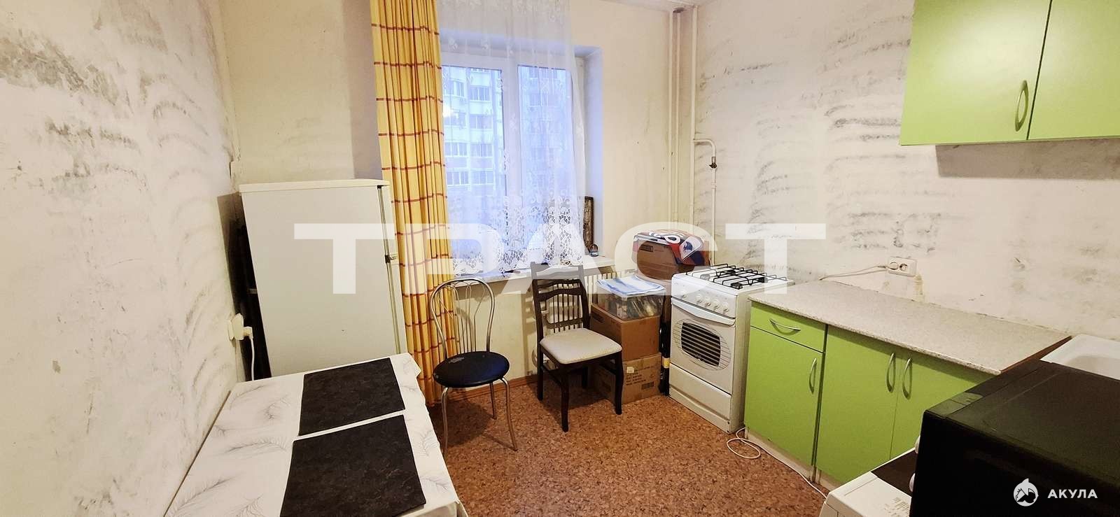 - квартира подготовлена к косметическому ремонту (удалены старые обои, закуплены новые красивые, в спальне уже начата наклейка их на стены)