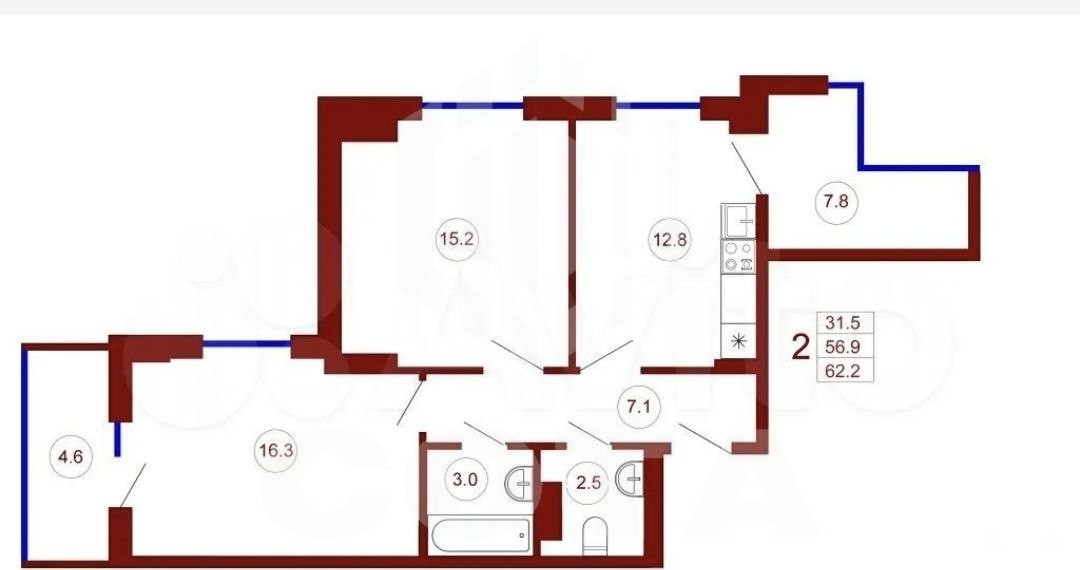 - 62 м²