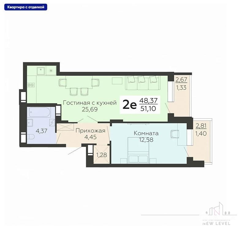 - 25.69 м²
