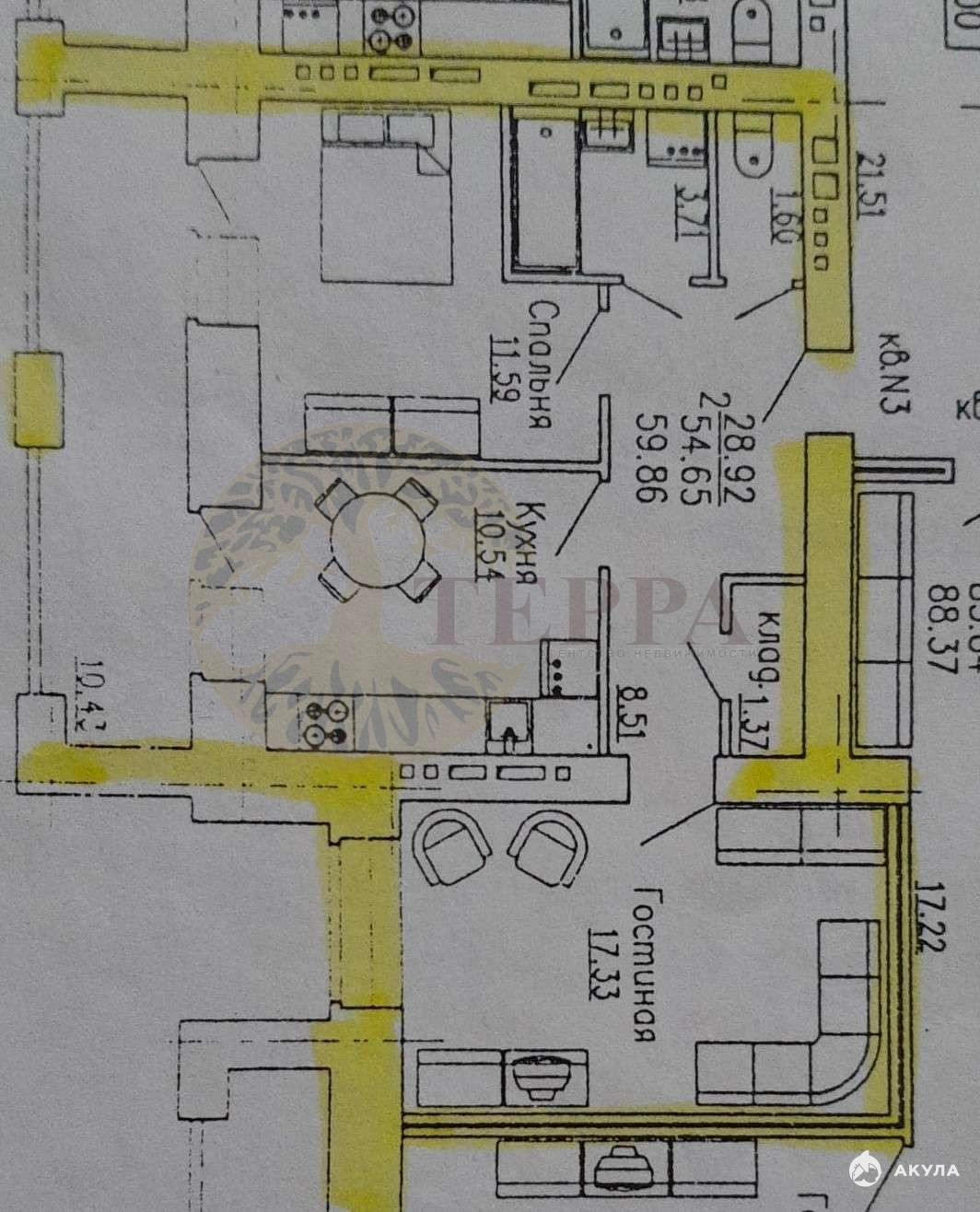 Идеальная планировка! Раздельный санузел в плитке, просторная кухня площадью 10, 54 м с выходом на лоджию, откуда открывается шикарный вид на город. Гостиная площадью 17, 3 м. Уютная спальня площадью 11, 59 м также с выходом на лоджию. Просторная прихожая, с отдельной гардеробной комнатой. Установлены надежные пластиковые окна.
