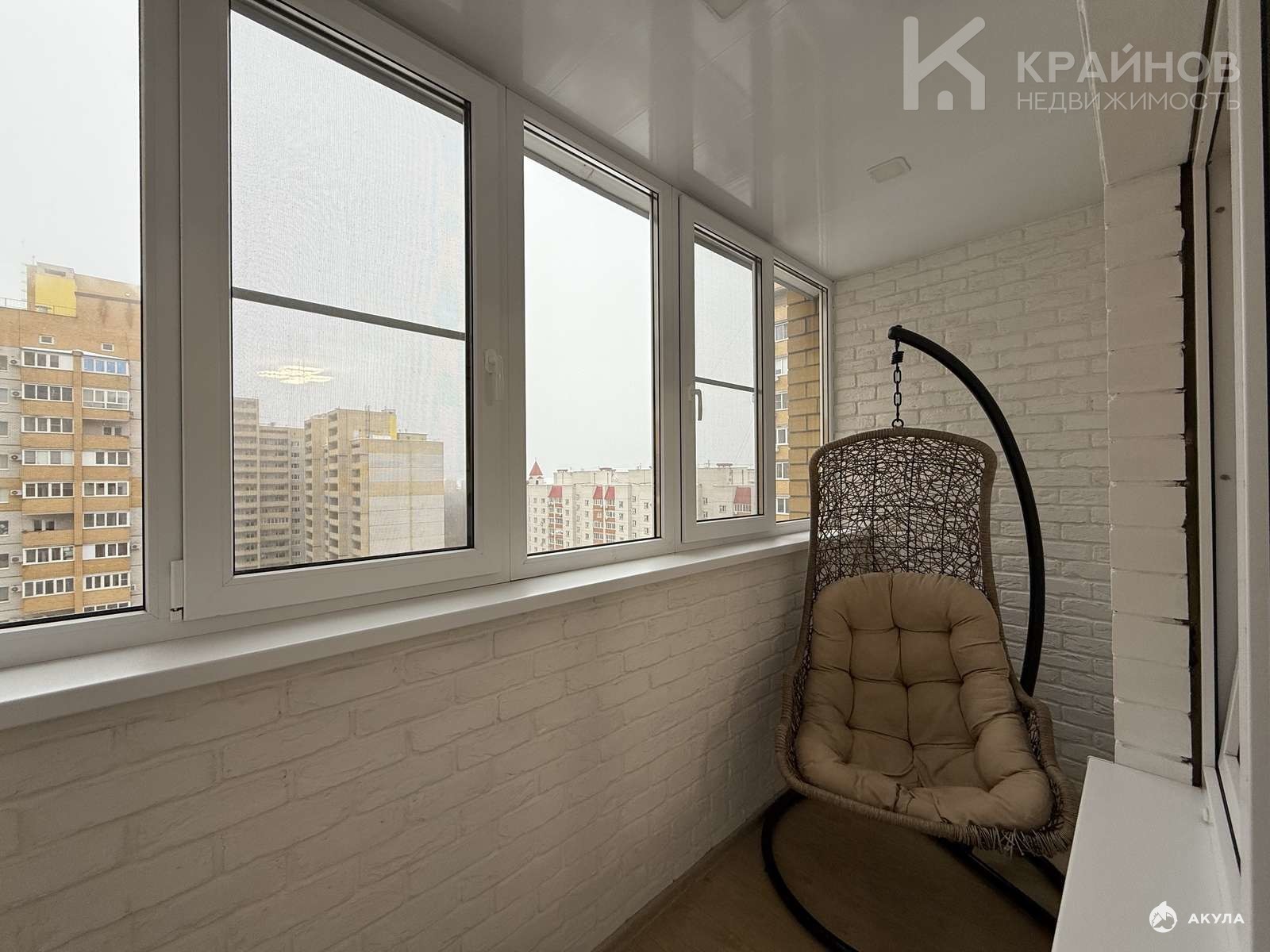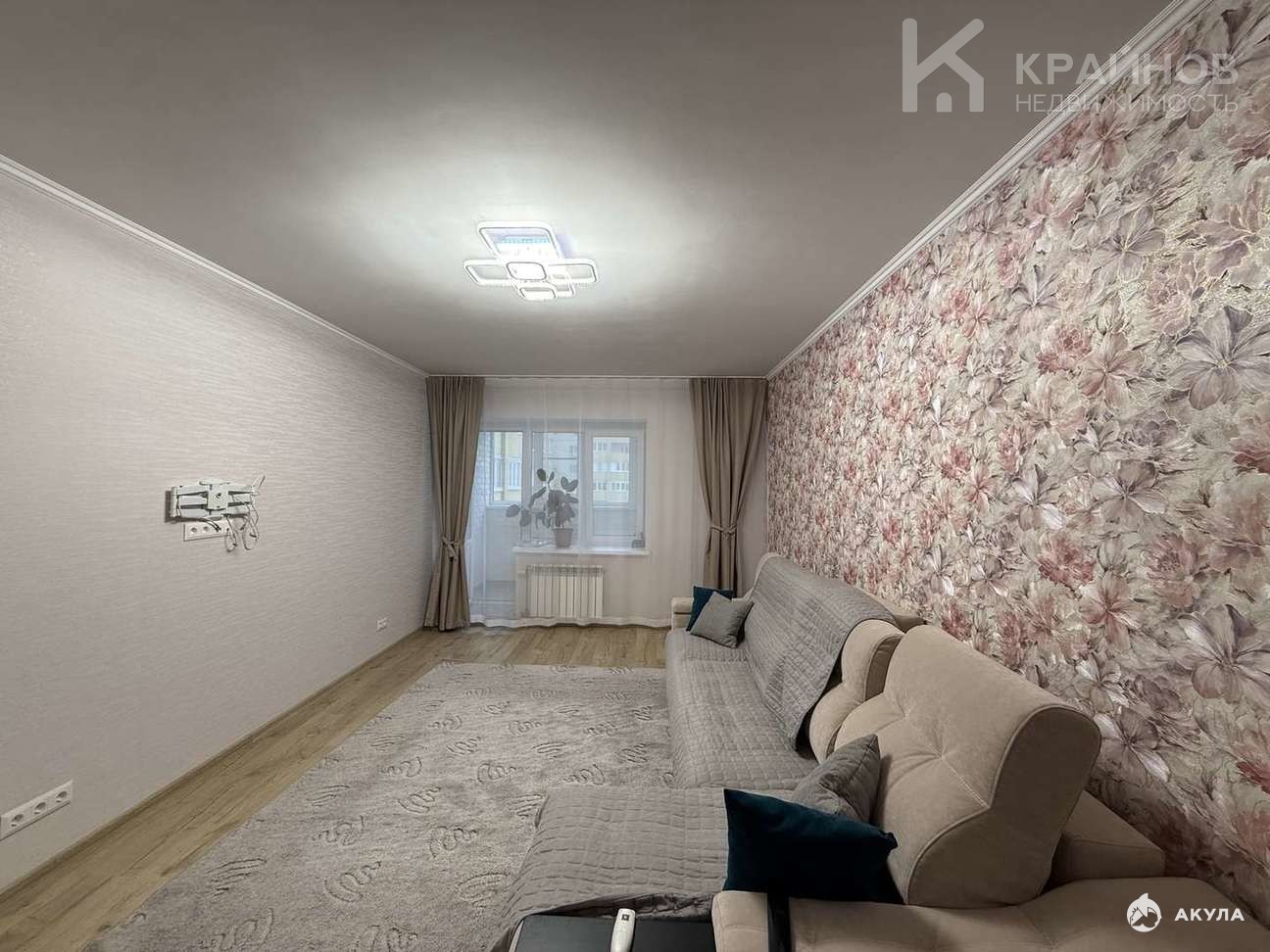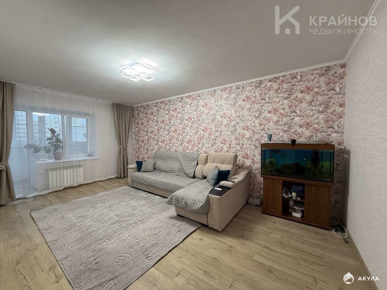Светлая гостиная с выходом на утепленную и застекленную лоджию с теплым полом. Вид во двор и на парк.