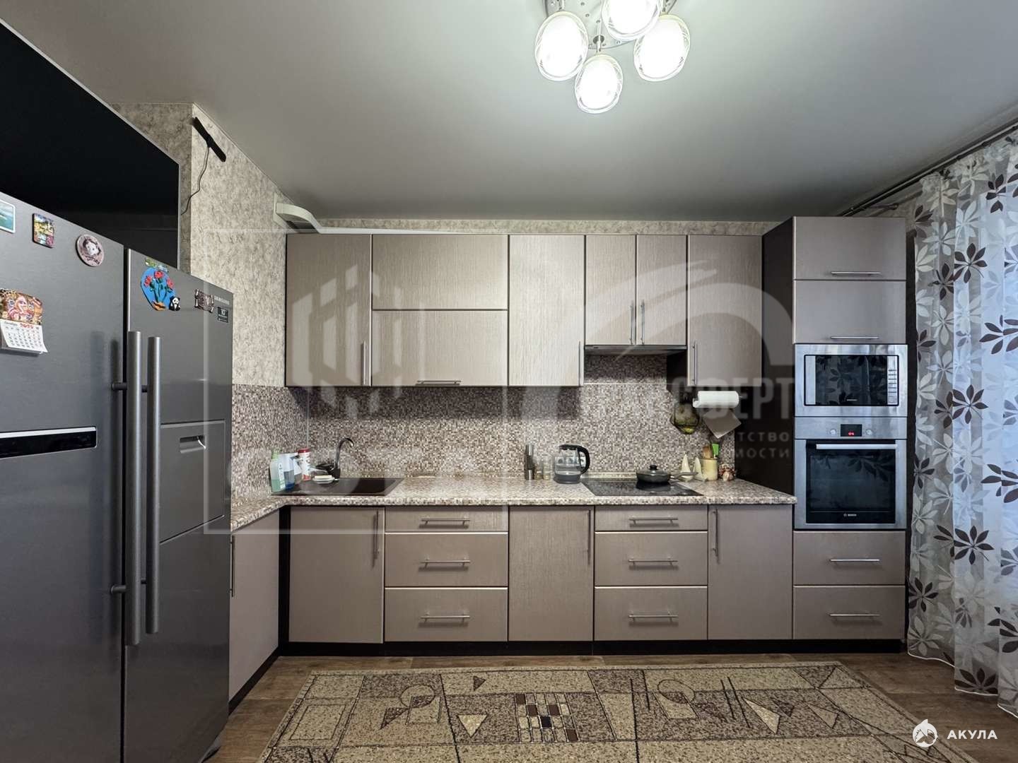 Бонусом для нового хозяина будет качественная мебель и частично техника: гостиная- стенка, диван и кондиционер; кухня - кухонный гарнитур с варочной панелью; спальня - кровать, шкаф, тумбочка, рабочий стол (спальный гарнитур производитель Дятьково) и кондиционер; детская мебель без спорт.уголка, прихожая - шкаф и тумбы; ванная и с/у- зеркала и тумбы под раковинами.