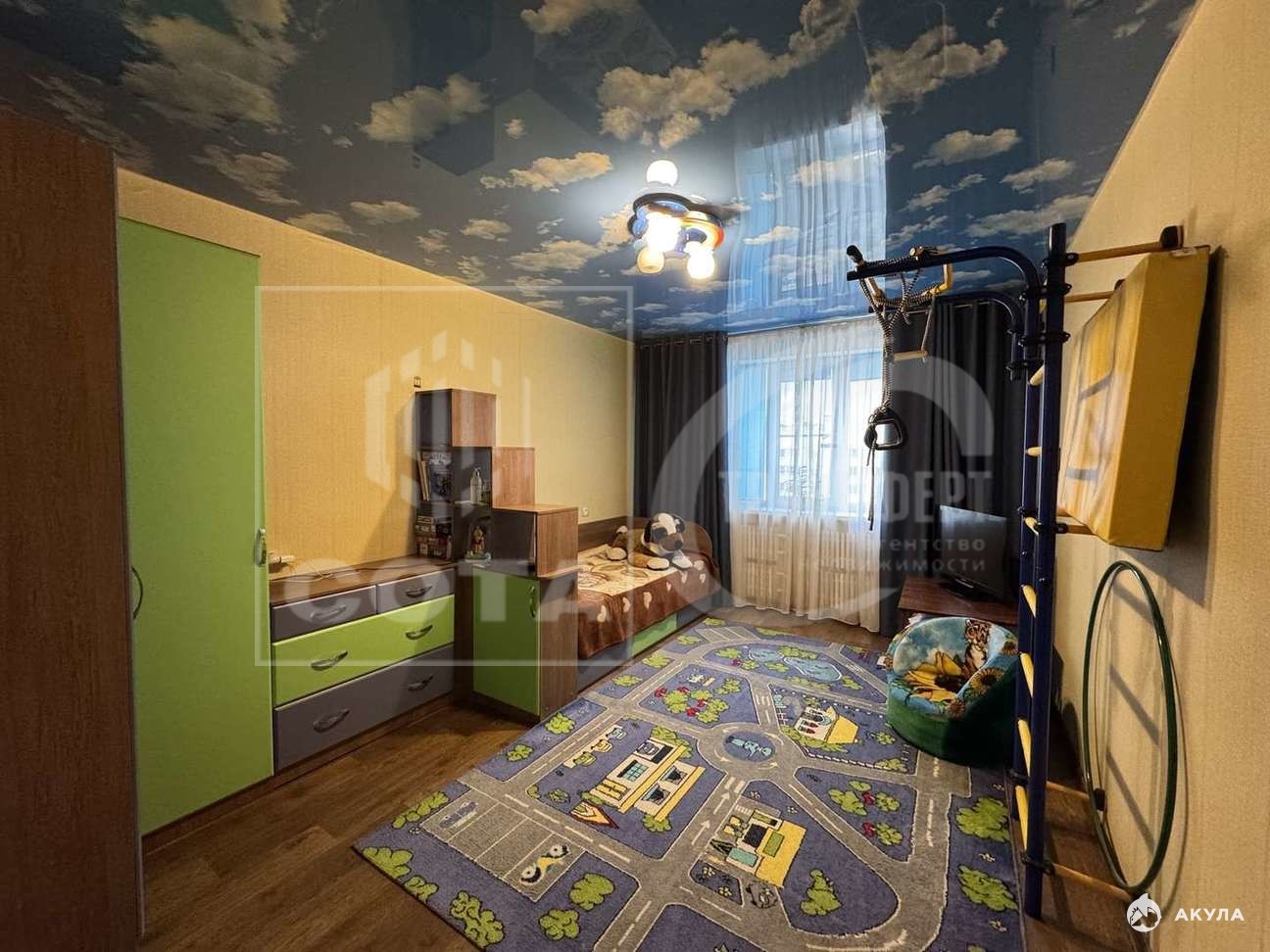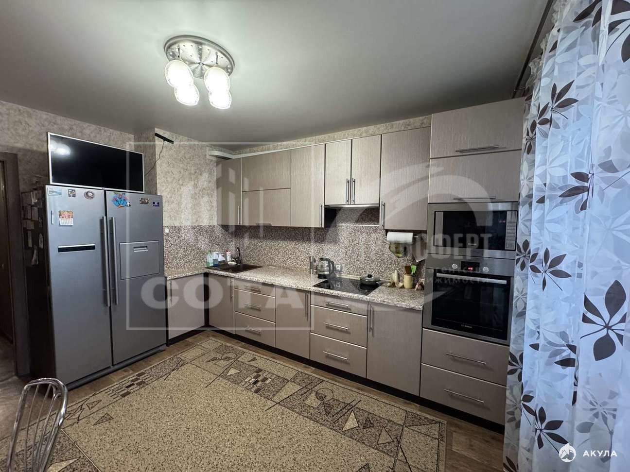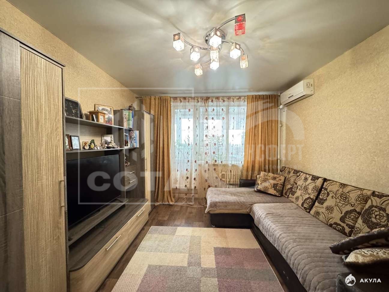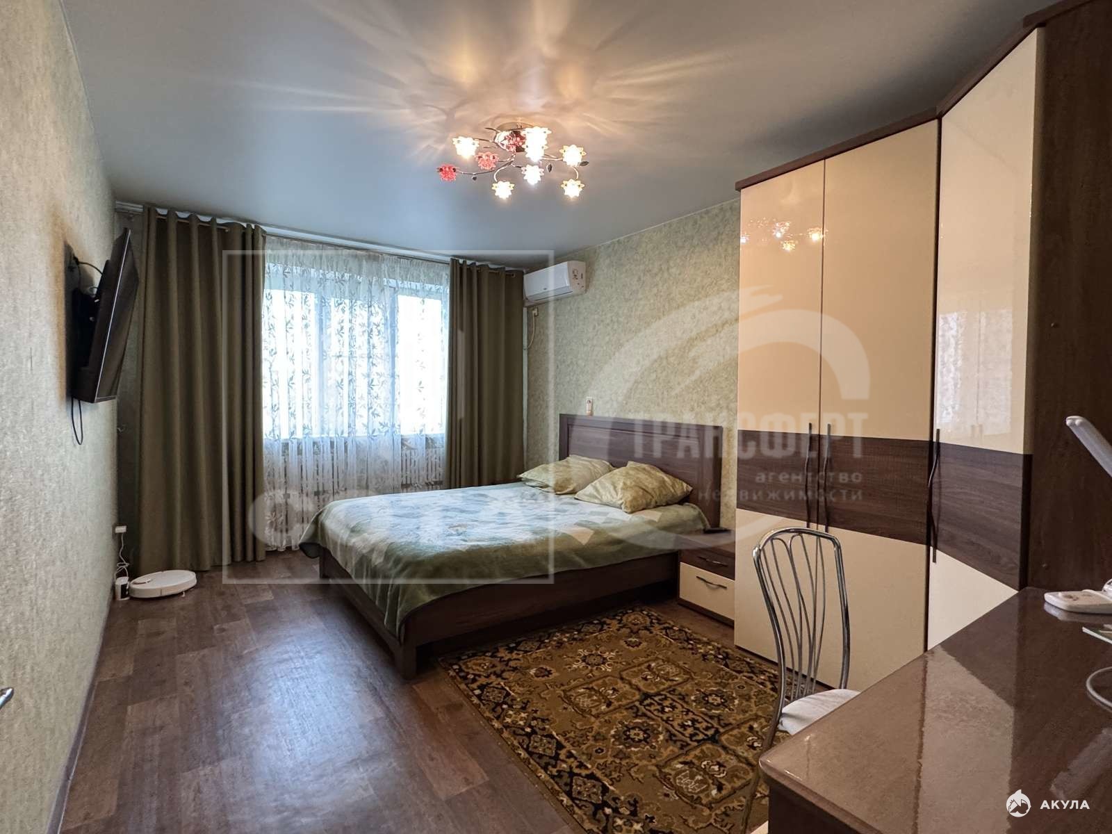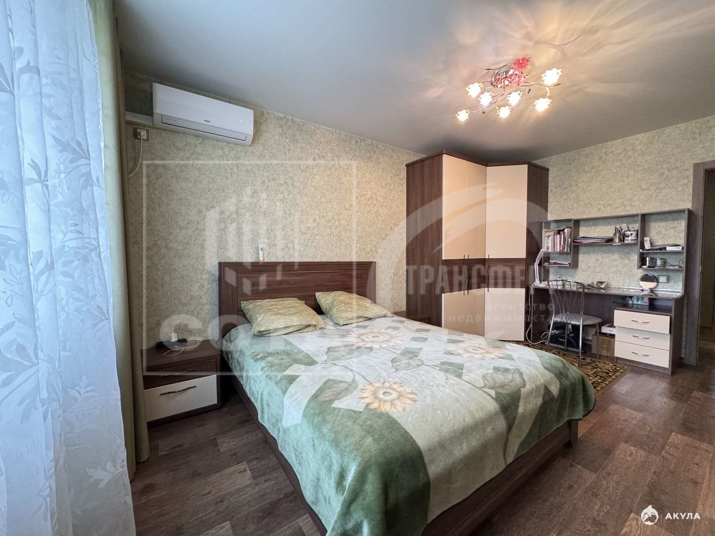 Бонусом для нового хозяина будет качественная мебель и частично техника: гостиная- стенка, диван и кондиционер; кухня - кухонный гарнитур с варочной панелью; спальня - кровать, шкаф, тумбочка, рабочий стол (спальный гарнитур производитель Дятьково) и кондиционер; детская мебель без спорт.уголка, прихожая - шкаф и тумбы; ванная и с/у- зеркала и тумбы под раковинами.