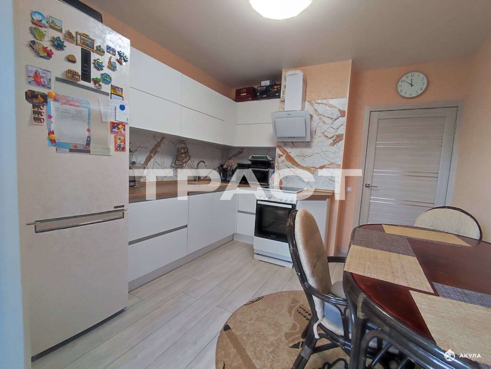 Заезжайте и живите! Новым владельцам остается вся необходимая мебель, бытовая техника, продуманная гардеробная система и стильная кухня от известного бренда "Зов" с фурнитурой Blum, обеспечивающей плавное и бесшумное закрывание.