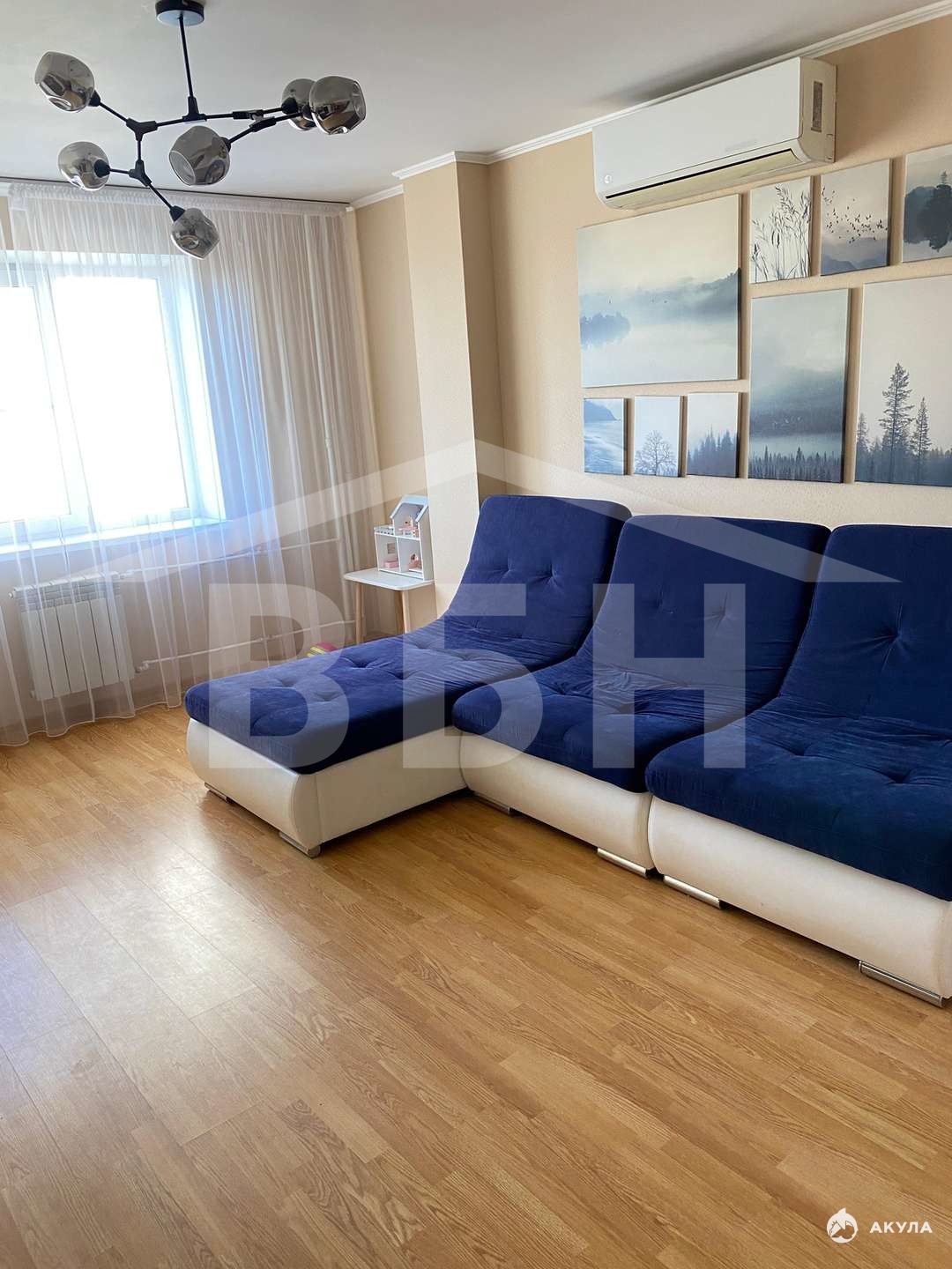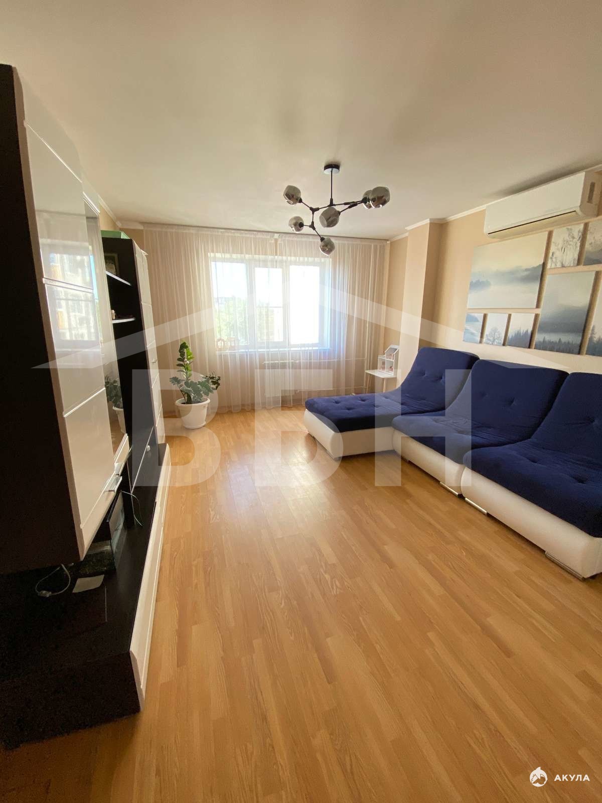 Простор 84 квадратных метра: 3 светлые комнаты с кондиционерами, большая кухня, уютный застеклённый балкон.