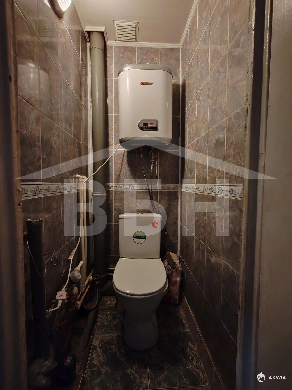 - Санузел отделан плиткой, всё чисто и аккуратно.