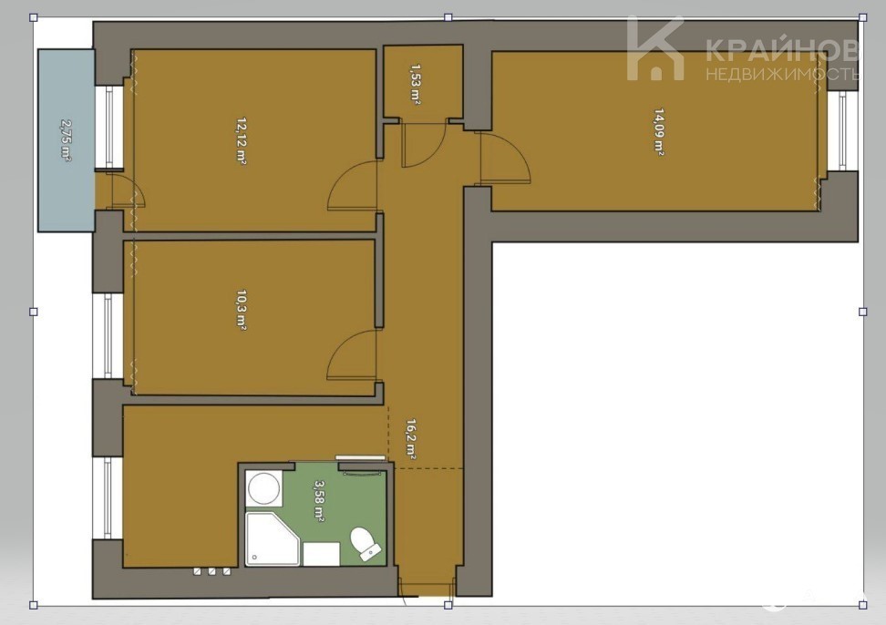Комнаты: 14, 09 / 12, 12 / 10, 3 кв.м