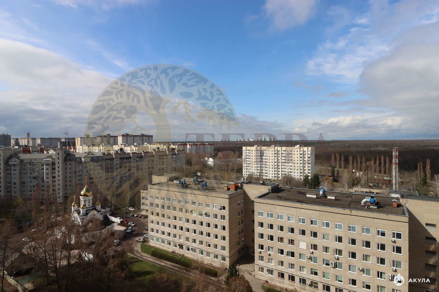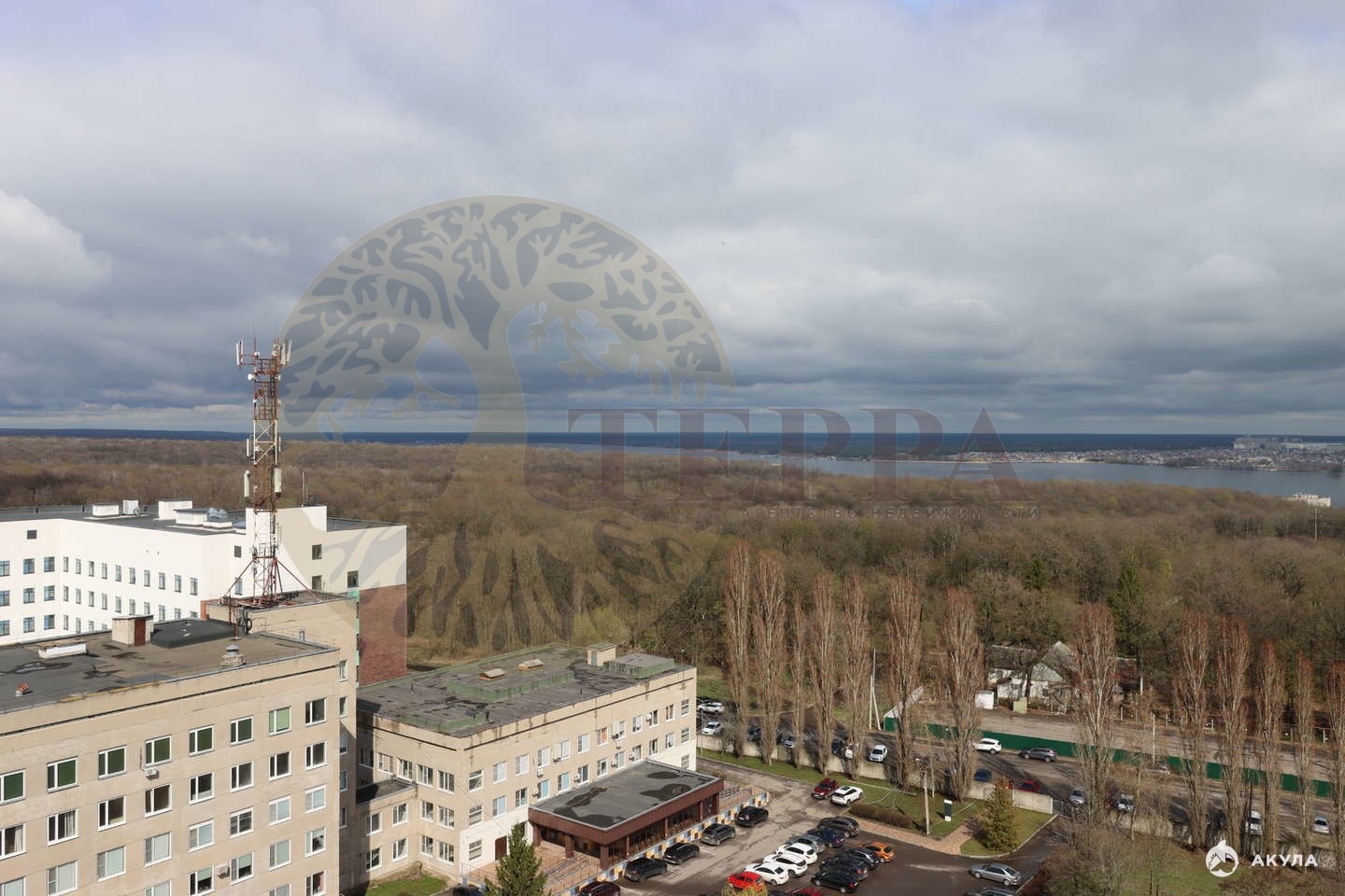 Из окна открываются потрясающие виды: с одной стороны — зелёный дендрарий, с другой — Нагорная Дубрава, Храм и водохранилище.