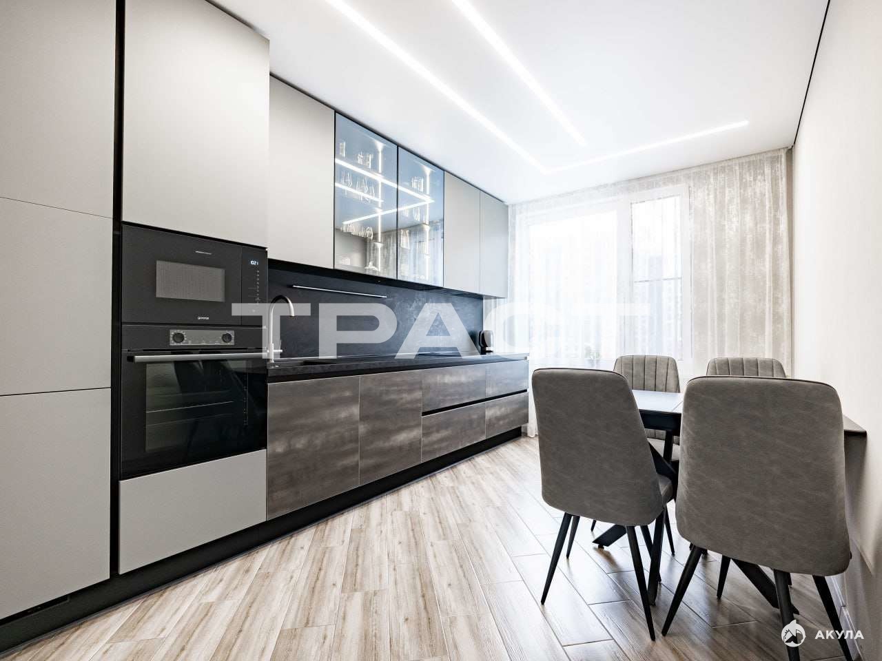 Полностью оборудованная функциональная и стильная кухня порадует каждого гурмана.