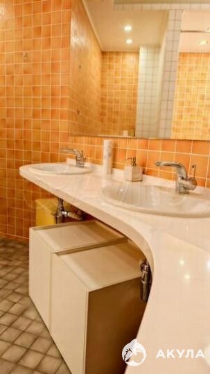 **Квартира** Общая площадь около 90 кв.м. Функциональная планировка — окна выходят на две стороны. Две изолированные спальни, просторная гостиная, объединённая с кухней (около 10 кв.м). Кухня с каменной столешницей, барной стойкой из цельного камня и двумя мойками. Дизайнерский ремонт, очень светлая, тёплая и уютная атмосфера. Много воздуха и пространства.