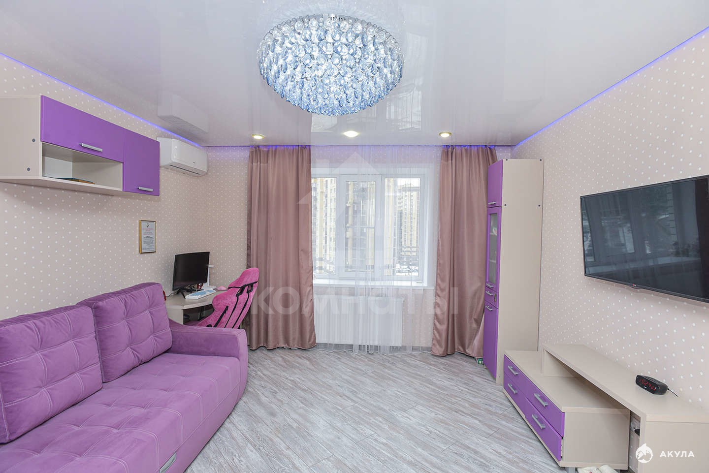 Дизайнерский ремонт выполнен из качественных материалов. В подарок оставим почти всю мебель.