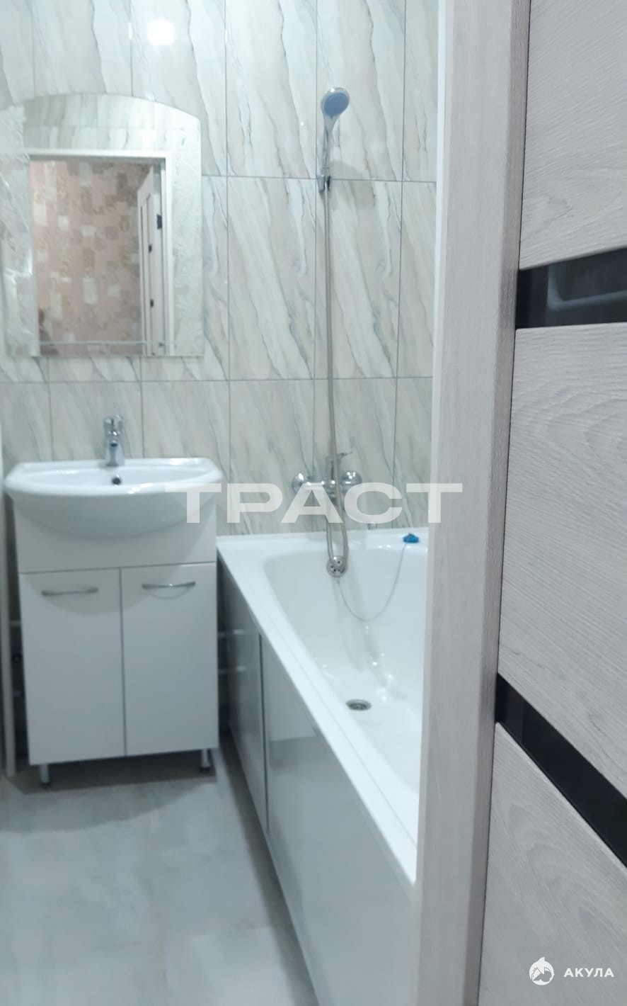 С/У выложен выложен плиткой, оборудован современной сантехникой