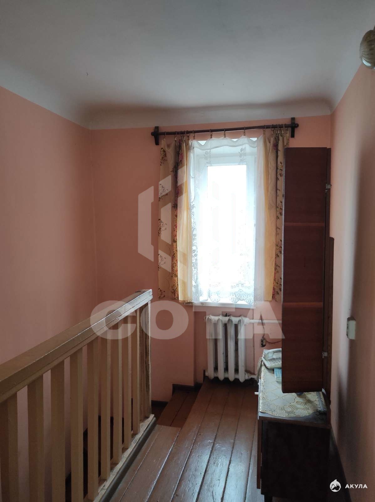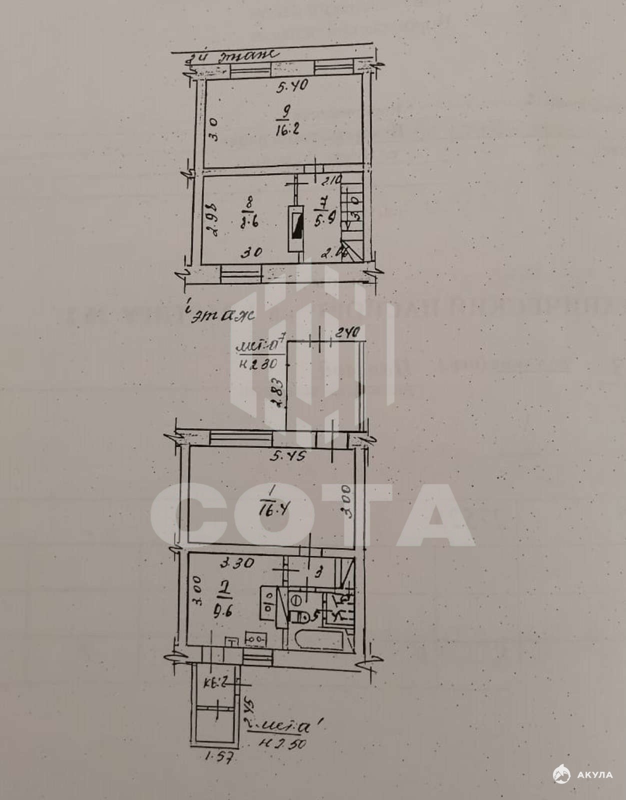 Интересная планировка: квартира в двух уровнях. На 1 этаже кухня 9, 6 кв.м, совмещенный санузел, просторный зал 16, 4 кв.м, веранда и большая кладовка с выходом на участок. На 2 этаже 2 жилые комнаты - 16, 2 кв.м и 8, 6 кв.м. Секция не торцевая, поэтому очень теплая.