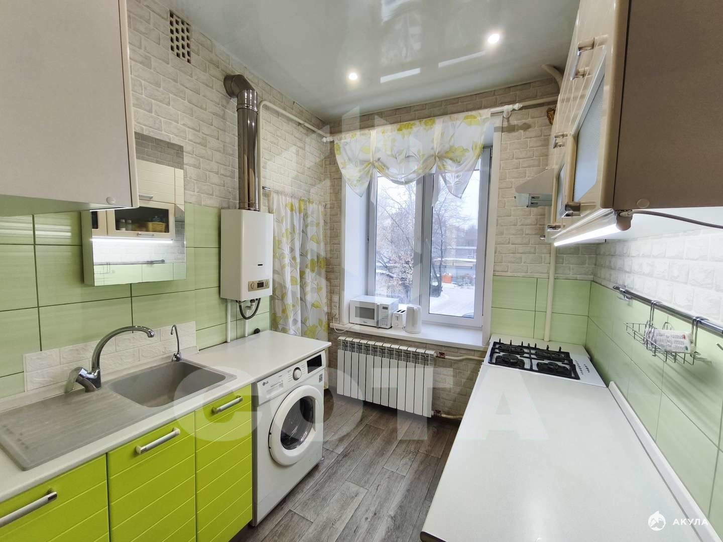 Квартира не торцевая, окна выходят на две стороны. Высокий потолок. В доме железобетонные перекрытия. Возможность перепланировки.