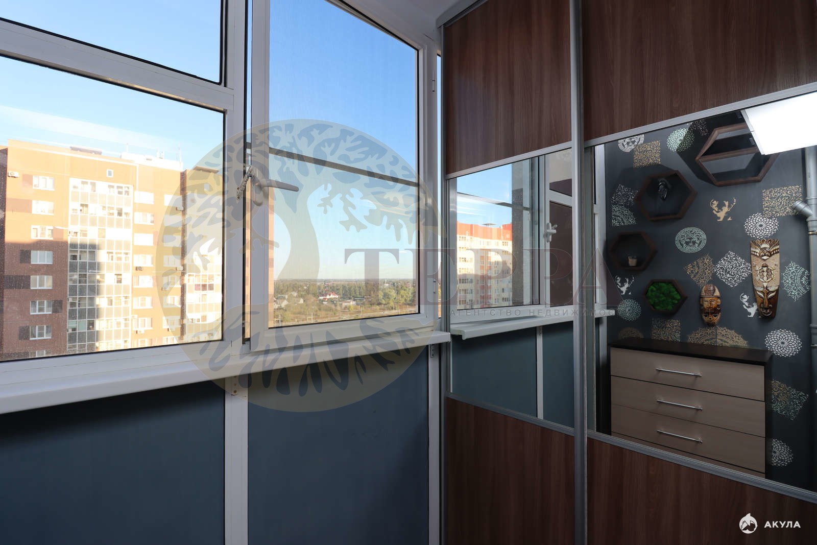 Удобство и комфорт: из кухни — выход на лоджию с дополнительной зоной хранения ( шкаф купе) , окна на две стороны обеспечивают много светa и свежего воздуха.