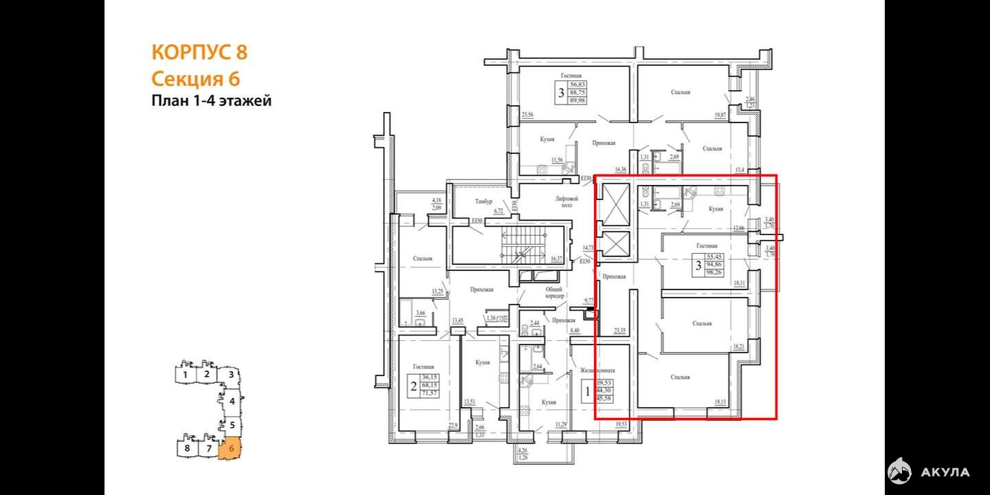 Общая площадь: 100 кв. м. Жилая площадь: 55, 45 кв. м. Площадь кухни: 12, 06 кв. м. Высота потолков составляет 2, 68 метра, что добавляет пространству воздуха и света.