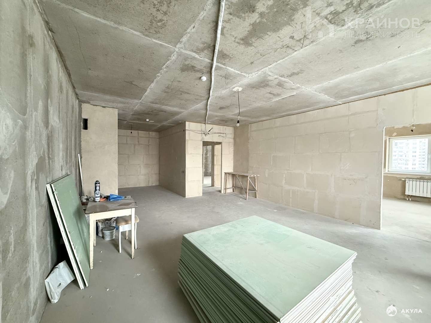 Выполнена разводка электрики от застройщика, проведены трассы под кондиционеры;