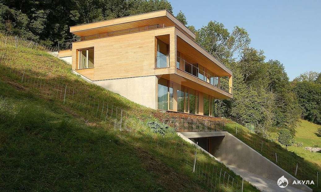 Выход на разные уровни: возможность создать интересные архитектурные решения дома со входом на разных этажах, террасы и балконы, висящие над садом.
