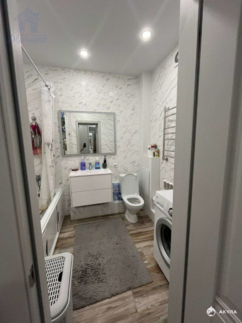 Аккуратный санузел не только практичен, но и радует глаз благодаря качественной отделке и продуманному дополнительному освещению.