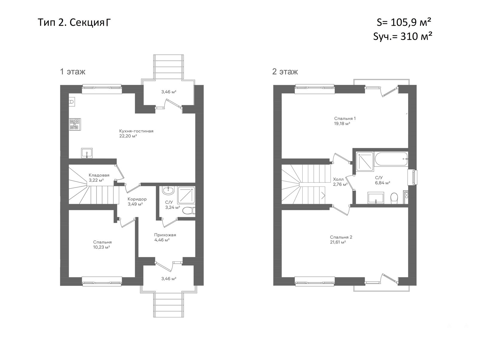 Площадь дома 105, 9 кв.м, участок 310 кв.м.