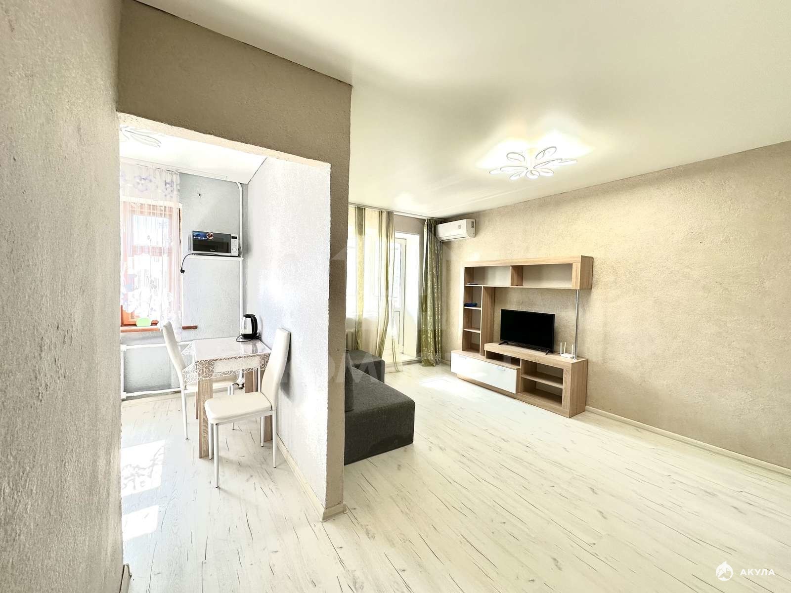 Квартира с ремонтом и обустроена необходимой для проживания мебелью и техникой.