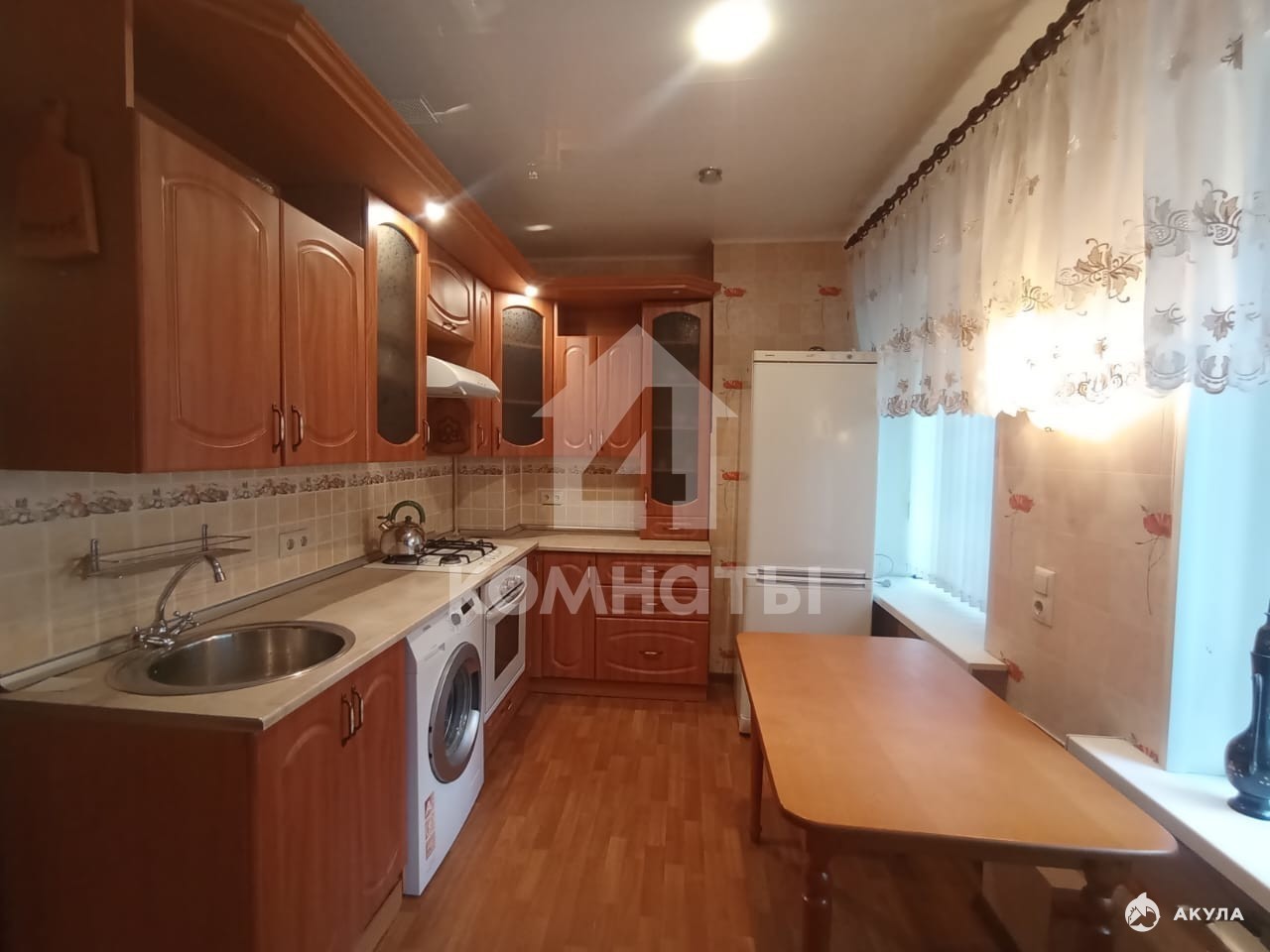 Из мебели и техники в квартире остается: кухонный гарнитур, стиральная машина, холодильник, мебель в прихожей. Раздельный санузел отделан плиткой, установлена качественная душевая кабина, в туалете имеется гигиенический душ. Новые инженерные коммуникации: медная проводка, пластиковые трубы.